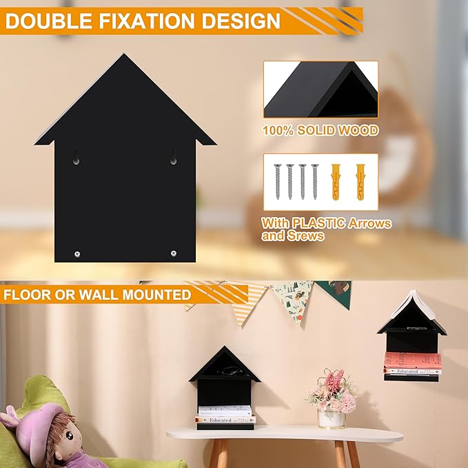 - 【PERFECT SIZE】The wood wall mounted bookcase is 7.48X7.02X11.02INCHES with pen,phone and glasses holders,Triangle Bookshelf is made from 100% pine wood.it is the proper size to hold your book open without taking up too much space