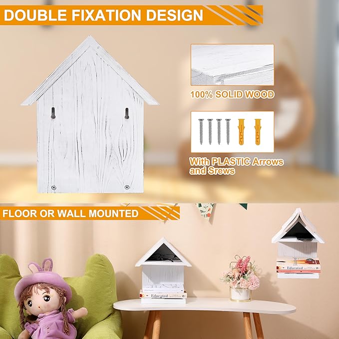 - 【PERFECT SIZE】The wood wall mounted bookcase is 7.48X7.02X11.02INCHES with pen,phone and glasses holders,Triangle Bookshelf is made from 100% pine wood.it is the proper size to hold your book open without taking up too much space