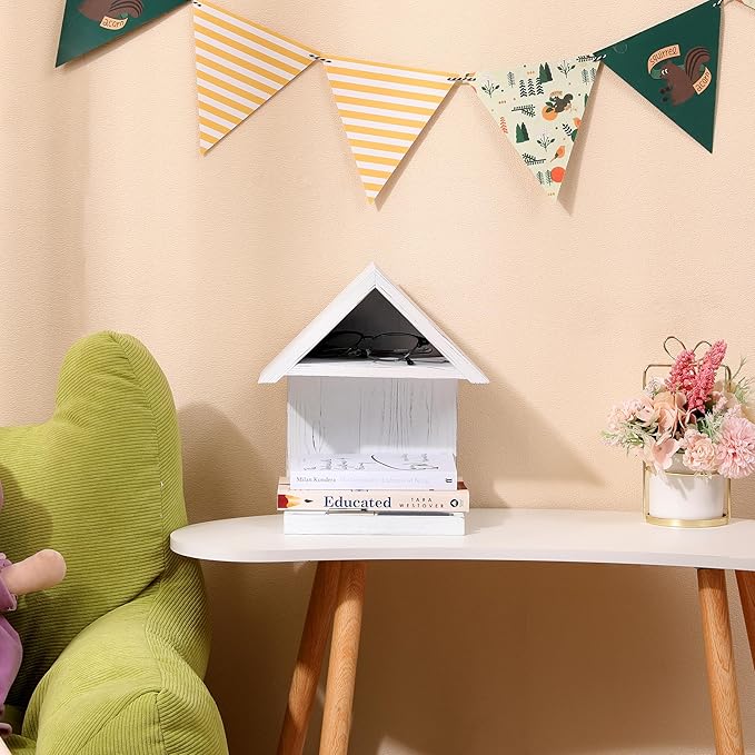 Wooden Floating Bedside Bookshelf, Desktop Book Stand, Mini Library Shelf for Glasses, Side Table Book Lover Organization (White)