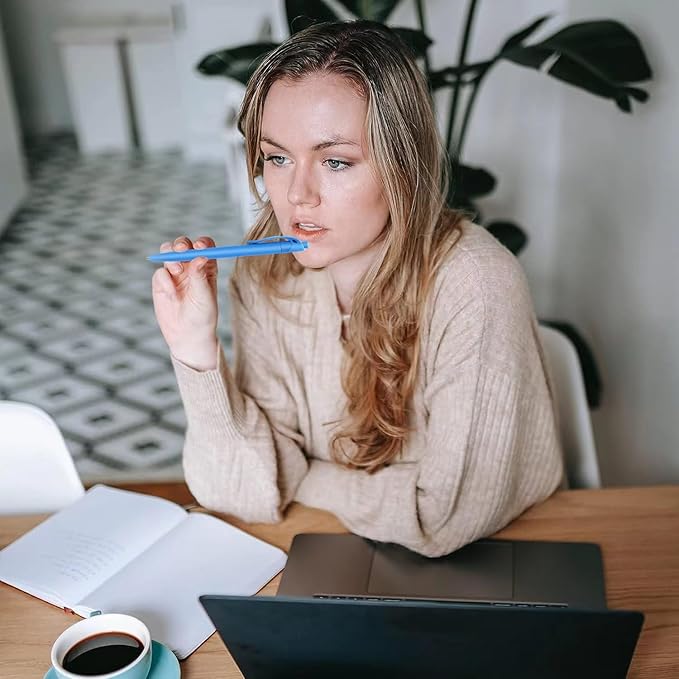 - 【Smooth writing experience】: The Retractable design ensures that these ballpoint pens have blue ink ready to use at any time. The blue ink color produces clear text, making it easy to read. The pen tip slides effortlessly on paper, providing a smooth and enjoyable writing experience that will make any task more comfortable.