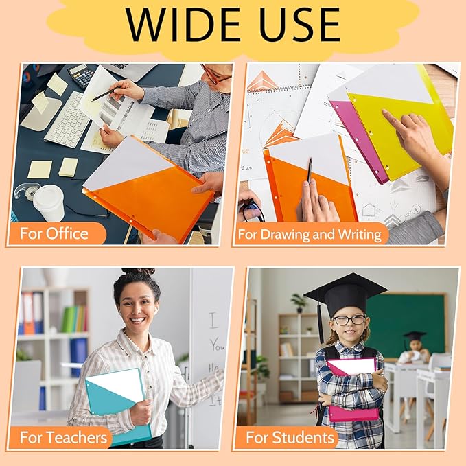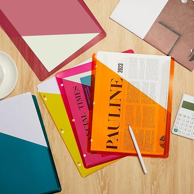 - Package Information: you will get 50 pieces of binder pockets, 5 colors, each color has 10 pieces, with size in approx. 9.25 x 11.22 inches/ 23.5 x 28.5 cm; Sufficient quantity will meet your using needs, and you can share them with your family