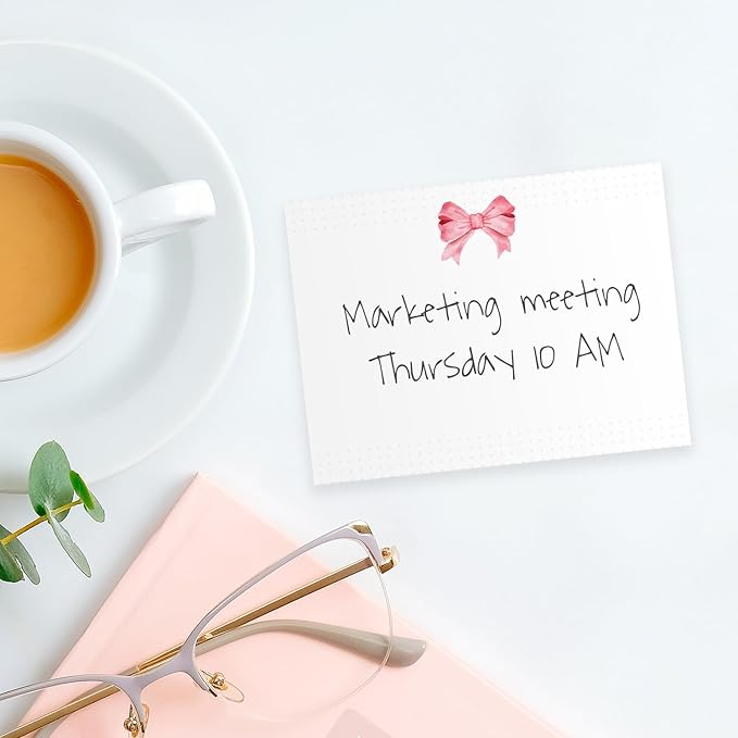- 6 Adorable Designs: Includes six charming illustrated bow designs with polka dots and a feminine blush pink color palette. This cheery sticky note pad set is great for home, office, school or work.