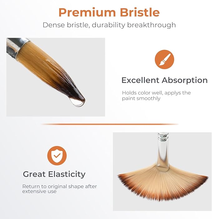 - High-Quality Craftsmanship : Double-crimping aluminum ferrule holds the bristle securely to the brush handle, it will not loosen over time. The sturdy and durable birch wood handles are designed to fit the curves of your hand, offering a comfortable grip for intricate work. This must-have paint brush set for artists are in elegant wood color
