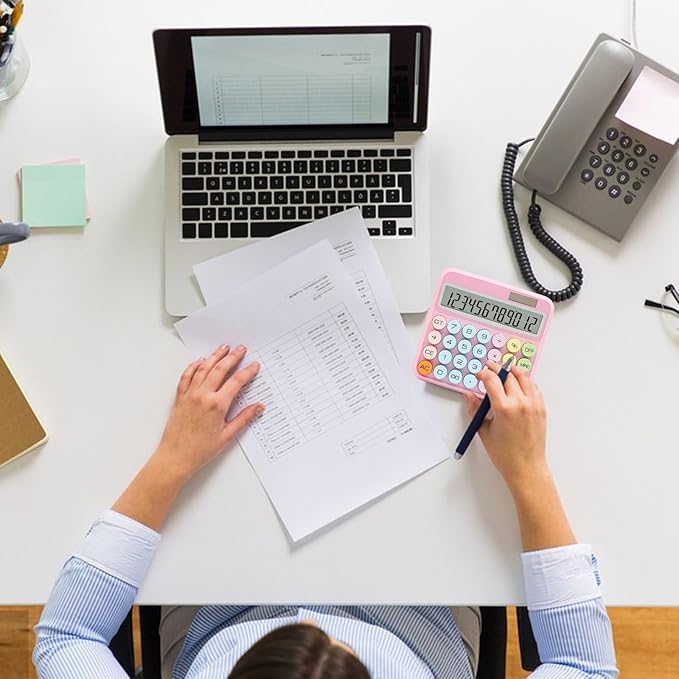 Pink Calculator, Standard Calculator 12 Digit with Large LCD Display and Big Buttons,Pink Office Accessories for Women Desk, Cute for Office,School, Home, Business(Colorful Pink)
