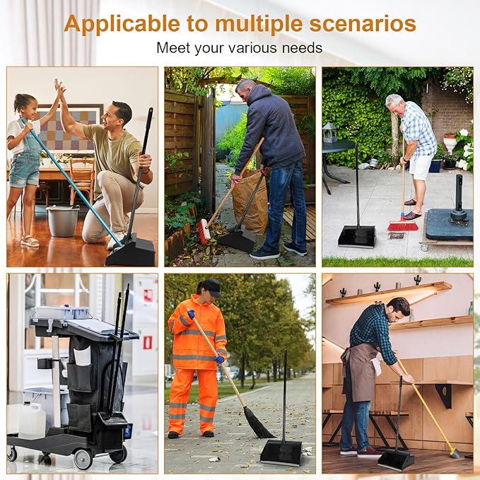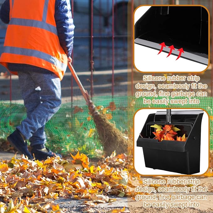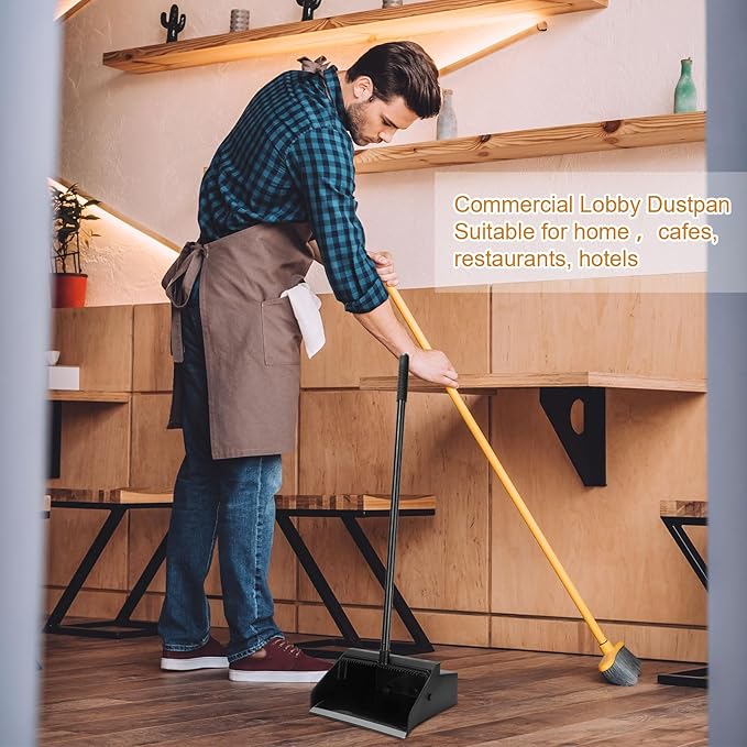 - Closed and Locking Head Dustpan Design: Commercial dustpan features a silicone rim design that fits the ground better, making it easier to remove dirt and quickly clean common areas; the locking pan locks into place, making emptying the dustpan even easier