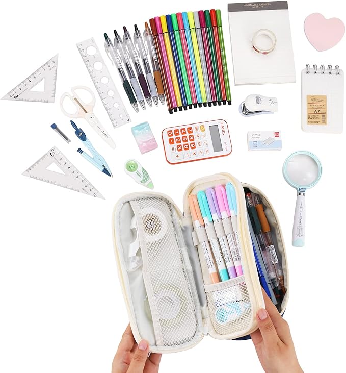 - Large Capacity Design: The dimensions are 9.06" x 4.33" x 3.54" This pencil case allows up to 80-100 pens/pencils, 20cm rulers, pencil sharpeners, and other stationery gadgets.