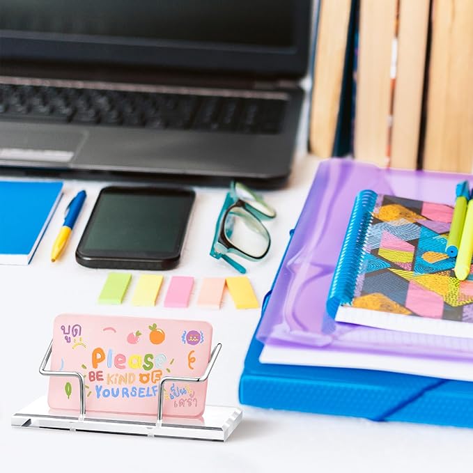 - Reliability and Durability: crafted from acrylic material and a sturdy metal frame, our desktop business card holders are designed to withstand heavy use and ensure long term reliability; These card holders are durable and feature meticulous polishing, making them proper for daily use in business settings; Please tear off the protective film before use