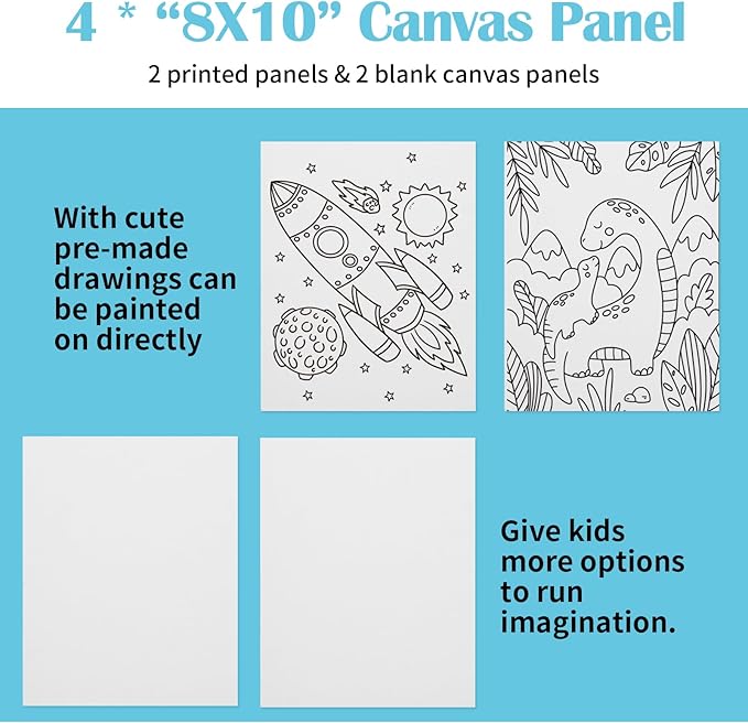- Quality Craftsmanship: This set features non-toxic acrylic paints. The paintbrushes are crafted with carefully chosen soft bristles, resistant to shedding. Two canvases in the painting set feature intricate patterns for coloring, while the others lie blank, inviting unbounded creative exploration.