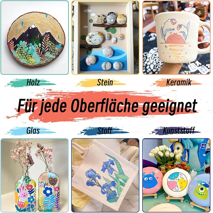- 【Versatile】: Suitable for various applications such as painting, sketching, making and DIY projects; it can also be used on surfaces like canvas, paper, wood, plastic, metal, glass, fabric, ceramics and more, providing smooth and stable ink output. This versatility enables users to create across different mediums and realize their DIY ideas in various projects