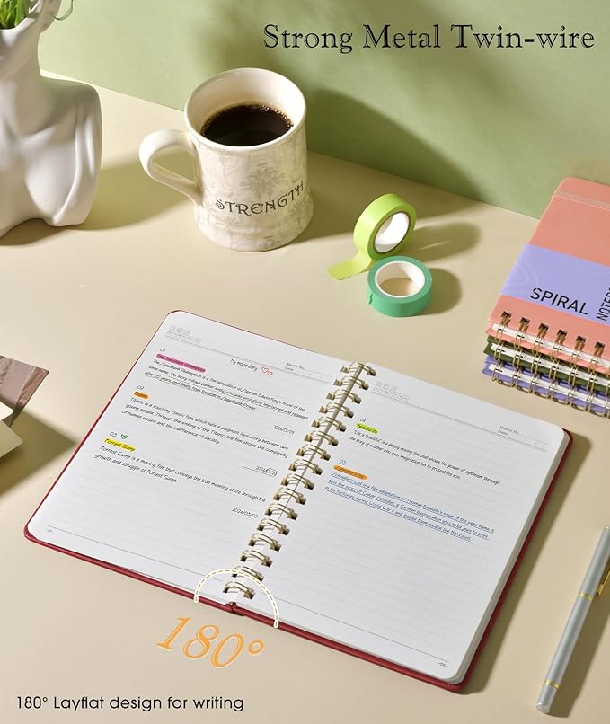 - 【Metal Twin-wire Construction】Our wire-bound spiral journal notebook has a sturdy gold-color double wire spiral with easy-to-turn pages and keeps pages attached reliably. Metal wire ring makes it easy to tear out pages without disturbing the rest of the pretty notebook. The 180°flat binding makes it easy to take notes with either hand, making it easier to read and more efficient to keep track of things.
