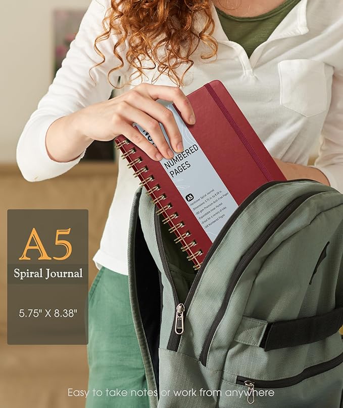 Lined Spiral Journal Notebook, A5 Hardcover Spiral Journals for Women Men, 150 Numbered Pages Spiral Bound Notebook, 100 GSM College Ruled Notebooks for Writing Note Taking 5.75" x 8.38", Wine Red