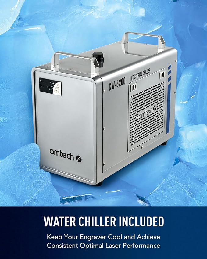 OMTech 60W CO2 Laser Engraver with LightBurn and Water Chiller, 16"x24" Laser Engraving Cutting Machine with Air Assist 2 Way Pass Digital Controls, Commercial Laser Cutter