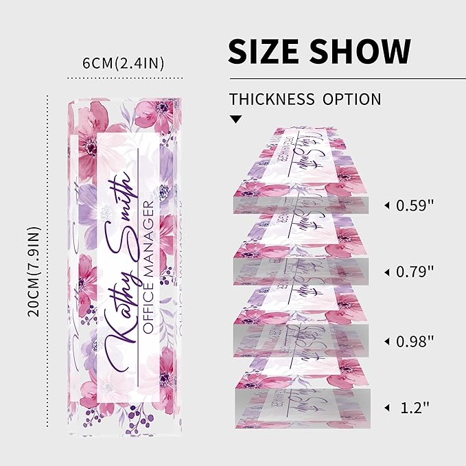 - 【High-Quality Acrylic Material】Our factory uses high-quality solid acrylic blocks to make name plates, and uses the latest high-definition UV printing machine to ensure that the content on the acrylic name plate is clear and not easily faded. So it will stand out on any desk, fully reflecting your professional ethics.