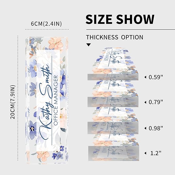- 【High-Quality Acrylic Material】Our factory uses high-quality solid acrylic blocks to make name plates, and uses the latest high-definition UV printing machine to ensure that the content on the acrylic name plate is clear and not easily faded. So it will stand out on any desk, fully reflecting your professional ethics.