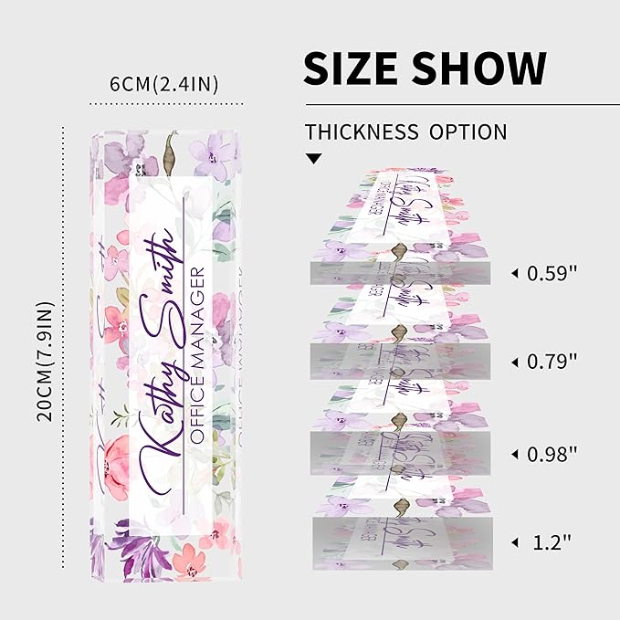 - 【High-Quality Acrylic Material】Our factory uses high-quality solid acrylic blocks to make name plates, and uses the latest high-definition UV printing machine to ensure that the content on the acrylic name plate is clear and not easily faded. So it will stand out on any desk, fully reflecting your professional ethics.
