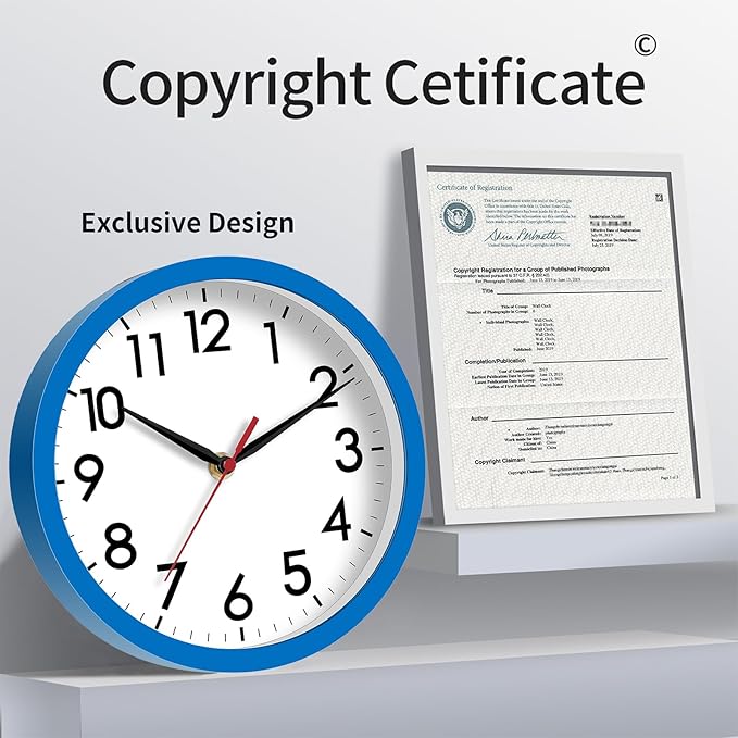 AKCISOT Wall Clock 8 Inch Silent Non-Ticking Modern Clocks Battery Operated - Analog Small Classic for Office, Home, Bathroom, Kitchen, Bedroom, School(Blue)