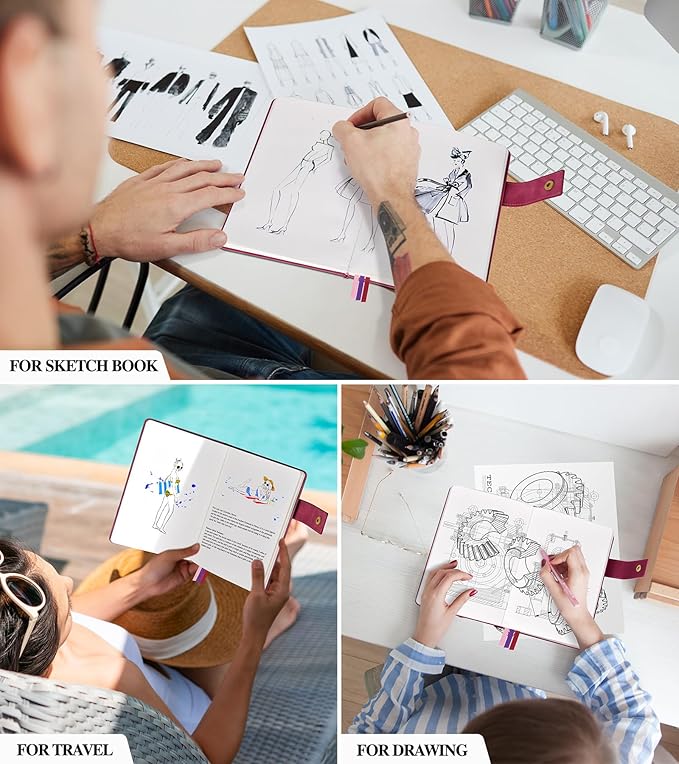 - 【180°LAY FLAT DESIGN】This drawing journal comes with 3 colored ribbon bookmarks, so you can mark your favorite pages with ease. The 180° lay flat design enables you to work on your drawings or writing without any distractions of bent pages. The unlined notebook ensures you have the freedom to sketch and write without any constraints.