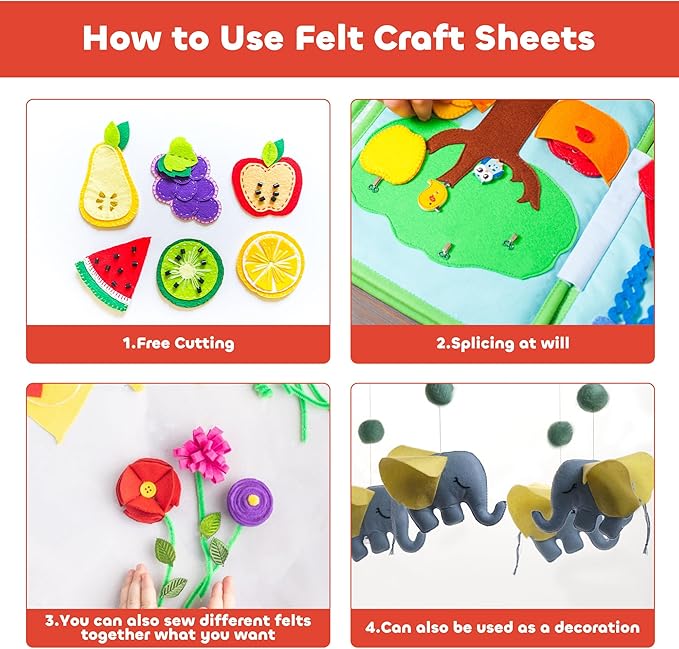 - DIY Time: These felt squares are ideal for DIY projects such as storage boxes, greeting cards, bags, and more, improving your hands-on ability. Not only great for home and party decorations, but they also serve as excellent educational materials for patchwork