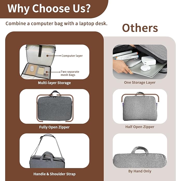 Lap Desk for Laptop Stand with Cushion, Adults with Storage Fits Up to 15.6in, Combines Features Bag and Pillow Table by Travel, Portable Workstation for Home College Office (Walnut Color)