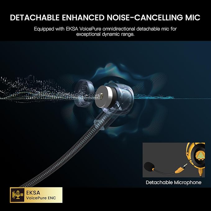 - 【Detachable Noise-Cancelling Microphone】The EKSA E900 Pro gaming headphones feature a high-sensitivity, unidirectional noise-canceling microphone that effectively reduces background noise while ensuring clear voice capture. They excel in delivering precise sound imaging, making them ideal for in-game chat, Skype calls, work, and study sessions.