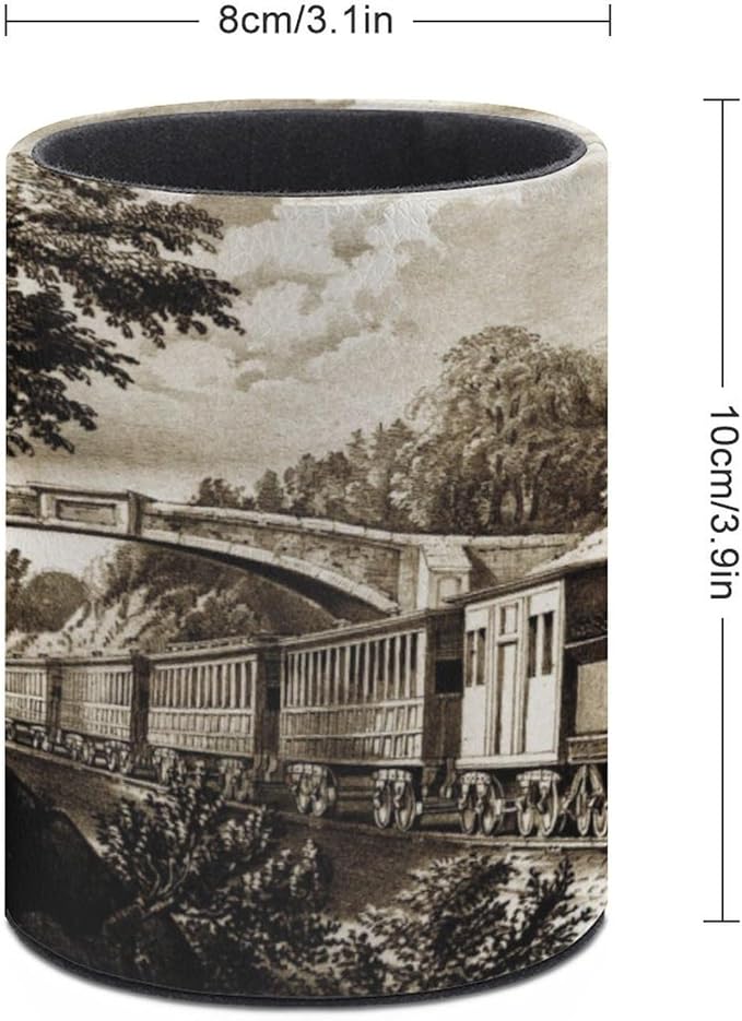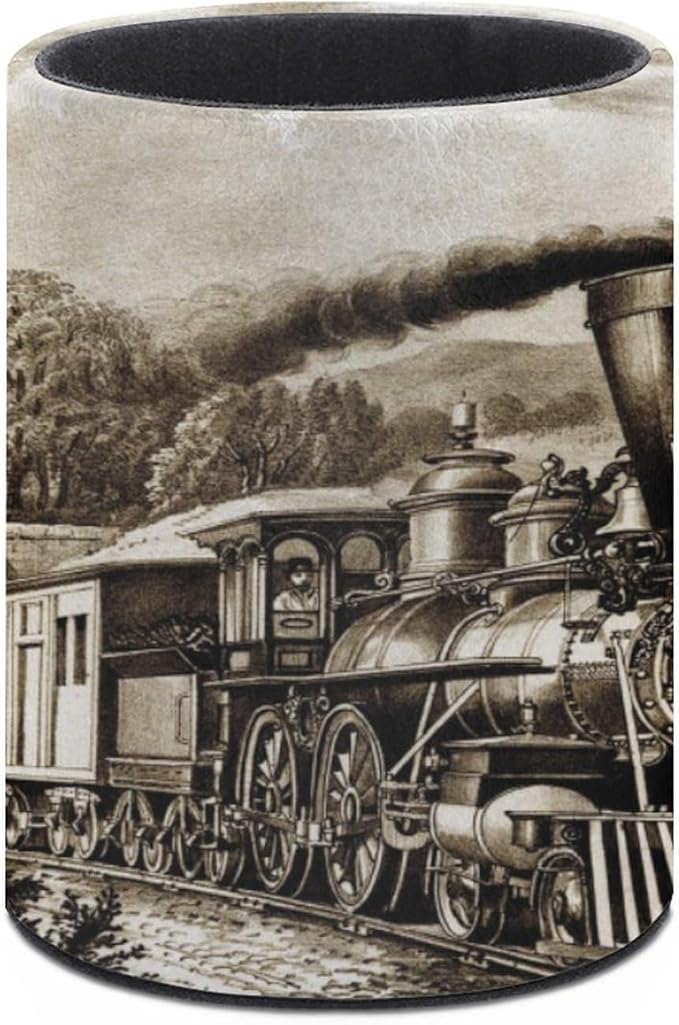 Vintage Steam Train Pen Holder Pencil Organizer Cute Pencil Cup Desk Decor Makeup Brush Holder PU Multifunctional Office Suppliesfor Home Classroom School