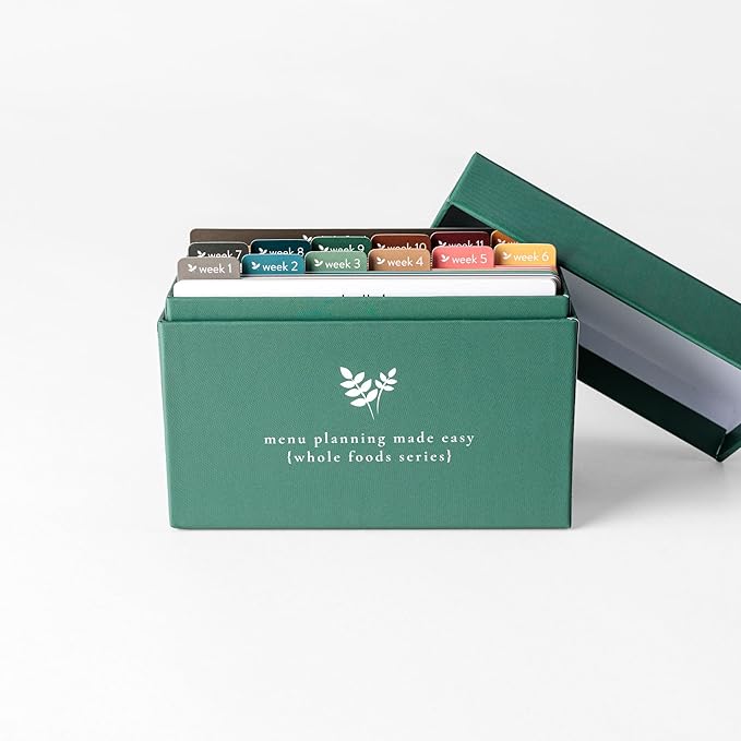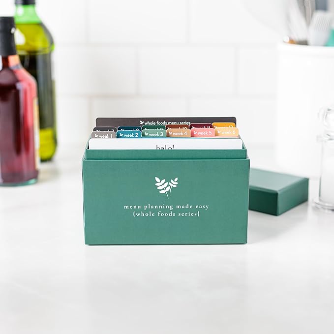 Meal Planner with 72 Recipe Cards (Whole Foods Menu) - Weekly Menu Planner | Sturdy Recipe Box | 12 Reusable Grocery Shopping Lists | 5 Blank Recipe Cards | Recipe Card Protector | Recipe Ideas