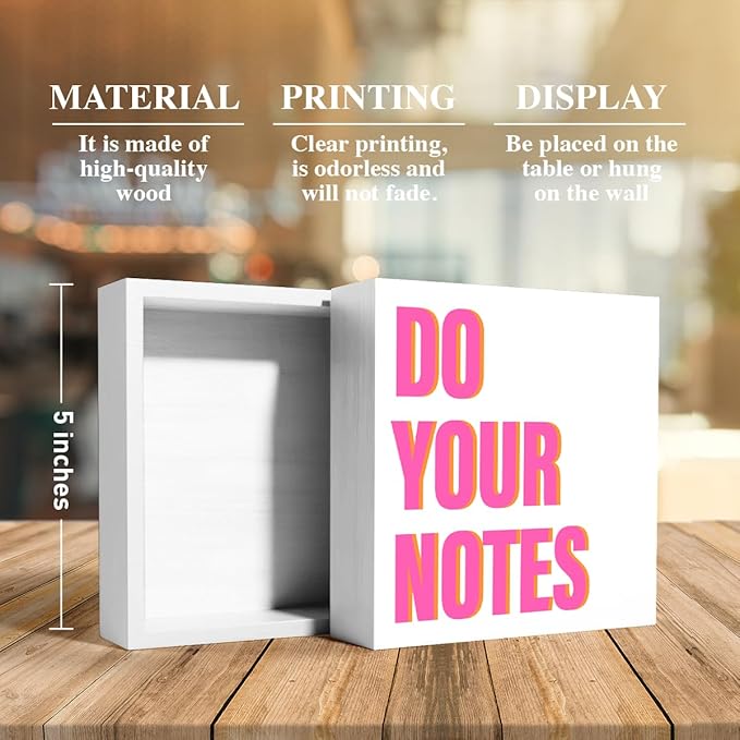 thoqii Therapy Office Desk Decor for Women, Mental Health Decor School Counselor Psychologist Therapist Office Decoration for Homeschool Classroom Bedroom, Do Your Notes Sign Wooden Box