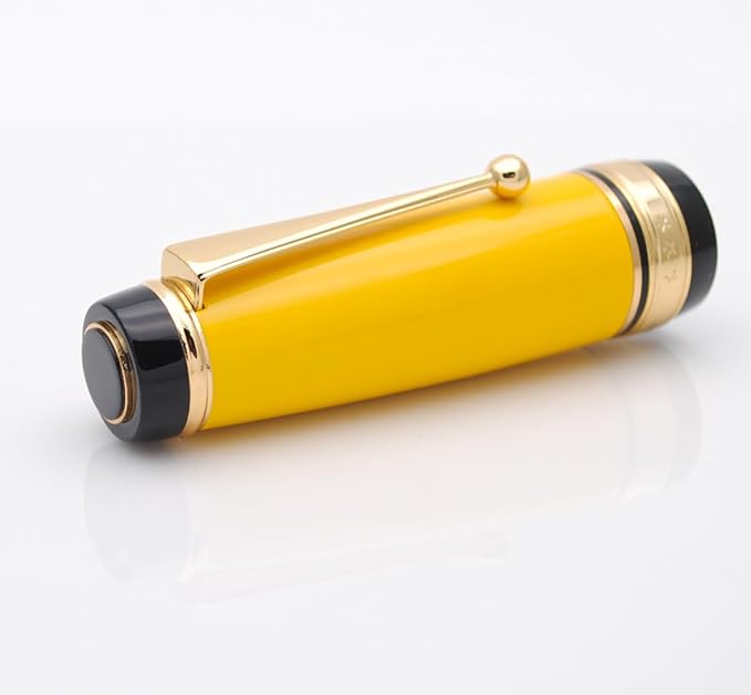 Metal Big Fountain Pen Set Medium Nib 0.7mm, Includes Ink Refill Converter, 5 Ink Cartridges & Gift Box (Medium Nib 0.7mm, Yellow)