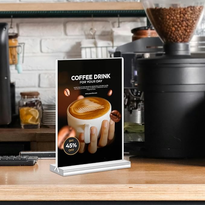 - 【Vertical T-shaped Base】Acrylic sign holder will securely stand by itself vertically on any countertop, desktop, table tent with its vertical T-shaped base. It will never fall over. Rounded Corner Design, Diamond level polishing, cutting process creates rounded corners and polished edges, which will not cause injuries to your hands.