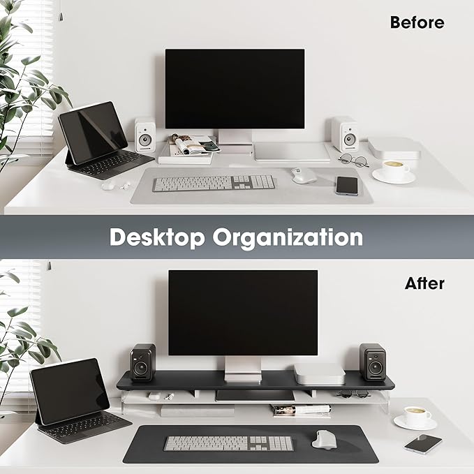 - 【Protect Your Cervical Spine & Eyes】: Acrylic monitor stand can raise your desktop by 4.7 inches to adjust to your eye level, reducing pressure on your neck and eyes.