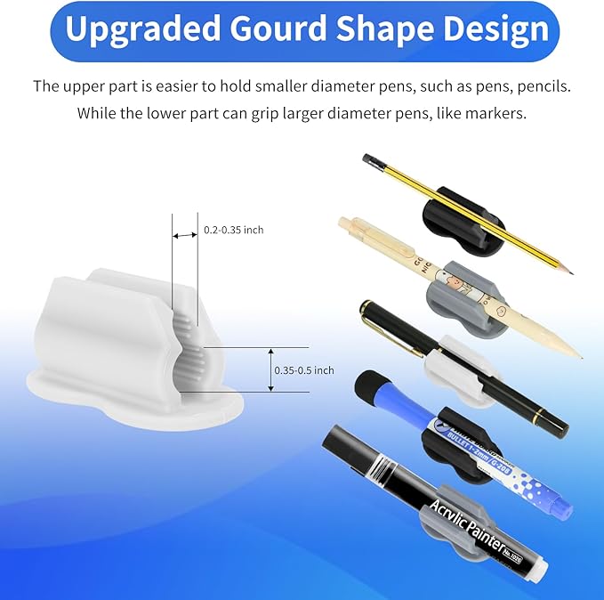 - 【Space Saving & No More Searching For A Pen】We offer 12pcs adhesive pen holders to keep everything organized. Adding these pen holders & pencil holders to the areas where we regularly use pens throughout the house, office, and classrooms, etc. They make pens, pencils, and markers available without cluttering our space. No more lost pens, No more pens rolling off desks