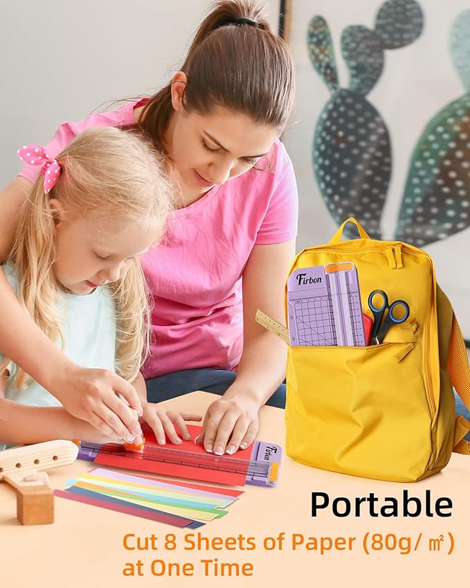 Firbon Purple A5 Paper Cutter, Straight Small Paper Trimmer with Side Ruler for Scrapbooking Craft, Paper, Coupon, Label, Cardstock