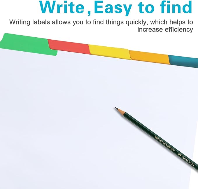 - Quick identification: Each separator has a 1/5 label, and the label design that extends to the outside of the page can enable you to quickly identify the documents you need, which is convenient for you to quickly identify and access in the office