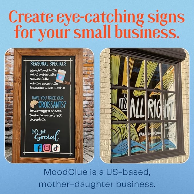 - ⭐️ BRIGHT VIBRANT COLORS - MoodClue is a dependable USA company who uses only the finest quality chalk, which provides bold neon colors that go on smoothly, don't smudge, dry quickly, and are washable and erasable.