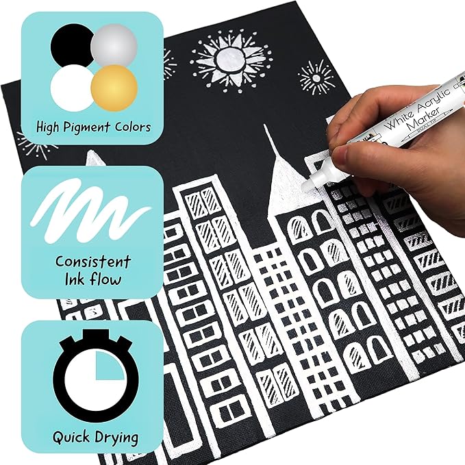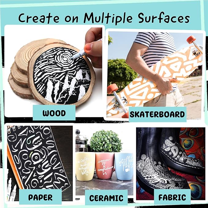 - Multiple Use - Get creative with DIY crafts using these White paint marker for canvas, acrylic white fabric marker, metal, porcelain, plastic, stones, polymer clay, wood, as paint markers for rocks and metal