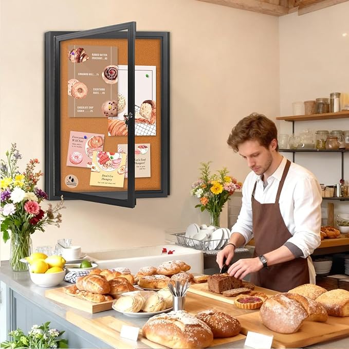 - Enclosed Bulletin Board with Locking Door & Self-Healing Cork - Crafted from premium dense cork, this enclosed bulletin board features a self-healing surface that maintains a smooth look. The locking glass doors ensure your displays stay flawless, ideal for offices, schools, and home.