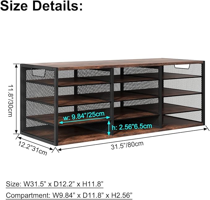 Mail Sorter Adjustable Holder, Countertop Literature Organizer, Student Mailbox for Classroom, Desktop Bill Paper Organizer for Office Home School, 12 Compartments, Brown