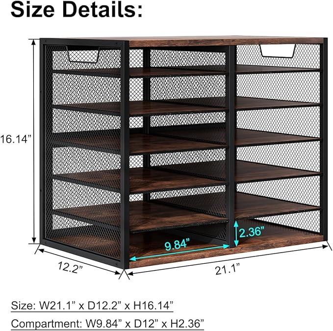 PAG Mass Mail Sorter - Adjustable Mail Holder, Countertop Literature Organizer, Student Mailbox for Classroom, Desktop Bill Paper Organizer for Office Home School, 12 Compartments, Brown