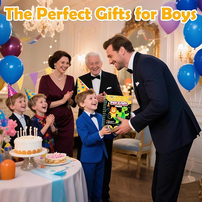 - 👸Foil creative activities: Kid foil craft brings a colorful and fun sensory experience, encouraging children to express and improve fine motor skills; Help toddlers improve children's creative thinking, concentration, imagination, eye-hand coordination, and hands-on ability; Kids can use cool foil craft set to create 16 unique pieces of art including dinosaurs, lions, tigers, monkeys, and more.