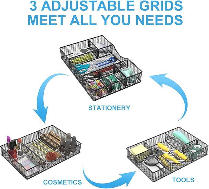 - 【Sturdy Metal Mesh】The VyGrow desk drawer organizer is made of coated metal mesh which is more sturdy than other plastic drawer organizer, also it won't accumulate dust. Great quality and good for organizing random things in a drawer instead of just tossing it all in randomly.