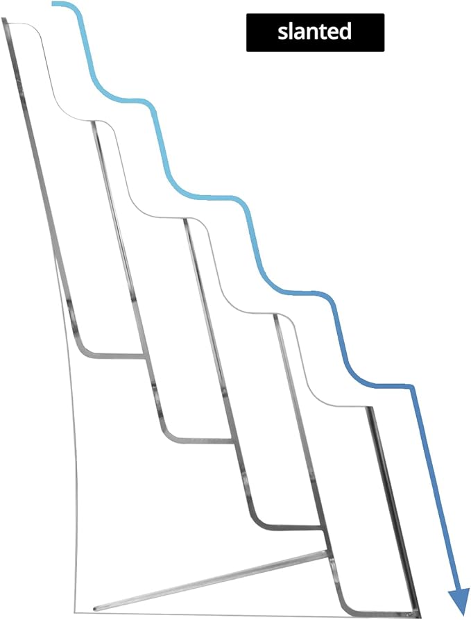 - Design: The slanted back design and non-slip slots ensure easy access and display of brochures, while maintaining a tidy and organized presentation.