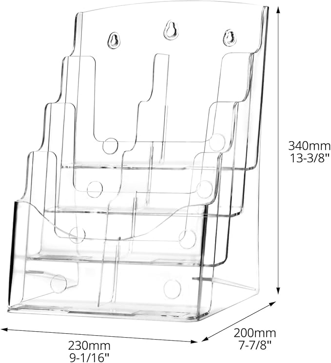 - Material: Made from clear acrylic, this brochure holder is highly roust and resistant to scrapes, ensuring long-lasting use.