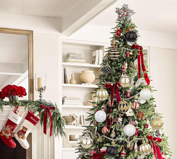 Hollyone 4 Inch Black & White & Gold Christmas Ornaments - 12 Pcs Shatterproof Tree Ornaments for Xmas Tree Decor & Party Wreath Home Decor