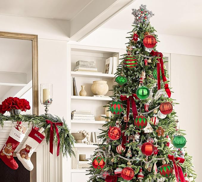 Hollyone 4 Inch Red & Green Christmas Ornaments - 12 Pcs Shatterproof Balls for Xmas Tree Decor & Holiday Party Wreath (Red & Green, 100mm)