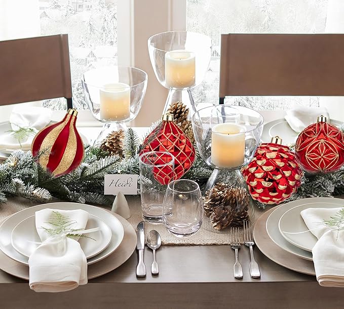 - šćORNAMENT SIZEć4 pcs 4.7"/120MM Variety of Shapes Plastic Christmas Balls. Tree balls with light weight and won't weigh down the Christmas tree branches. Exquisite tree baubles that create stunning Christmas theme and add stronger festive atmosphere.