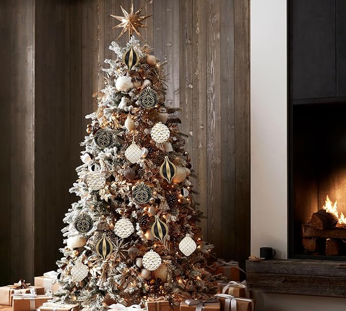 Hollyone 4.7 Inch Large Black and White and Gold Christmas Ornaments 4Pcs Balls Shatterproof Christmas Hanging Ornaments for Xmas Tree Decor Wedding Party Wreath Home Decor (Black & Gold, 120mm)