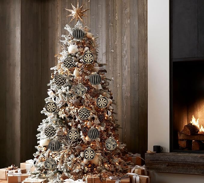 Hollyone 4.7 Inch Large Black and Gold Christmas Ornaments 4Pcs Christmas Tree Balls Shatterproof Christmas Ornaments for Xmas Tree Decor for Holiday Party Wreath Home Decor (Black & Gold, 120mm)