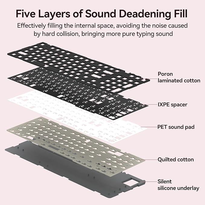 - Slient Design: This quiet mechanical keyboard adopts gasket structure with 5 layers of acoustic padding to bring you an unprecedented silent typing experience for a truly silent office