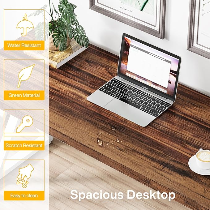 - Spacious Desktop & Leg Room: Measuring 29.52'' H x 55.12'' W x 23.62'' D overall, the large desk surface allows plenty of room for laptop, books, office supplies and paperwork, and the smooth top makes for easy cleanup and writing. Ample space under desk ensures any chair can fit under desk, and allows your legs relax after long day of working