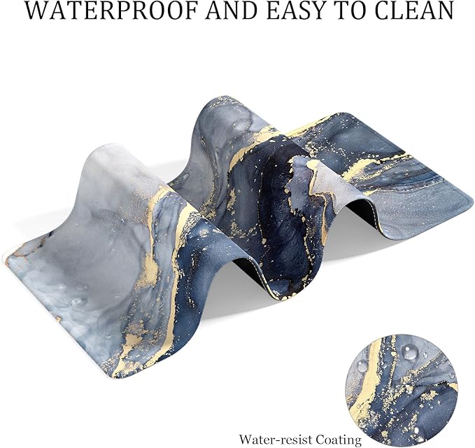 Desk Mat, 32" x 16" XXL Extended Large Gaming Mouse Pad, Desktop Decor Desk Pad, Cute Men Women Office Supplies and Accessories, XL Mouse Mat for Laptop & Keyboard, Blue Gray Gold Marble